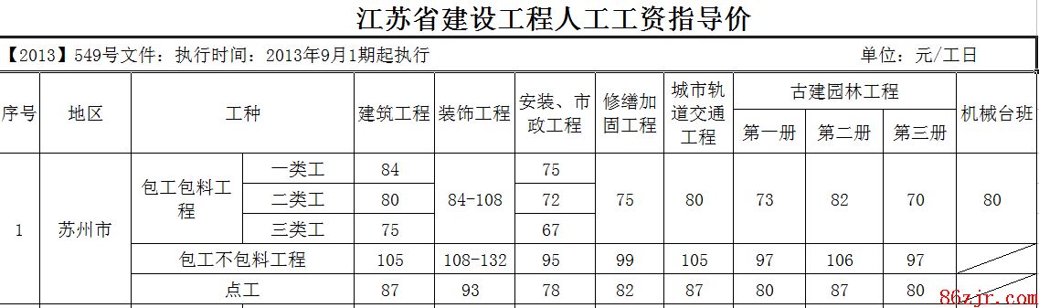 《江苏省建设工程人工人为指导价【2013】549号文件》