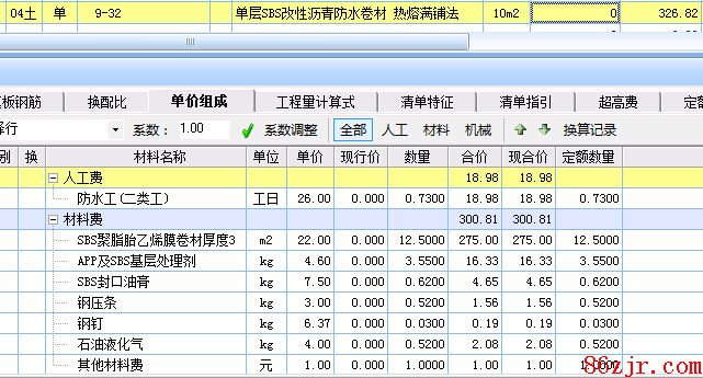 定额的材料名称下卷材应该有规格厚度及消耗量也可以看出。