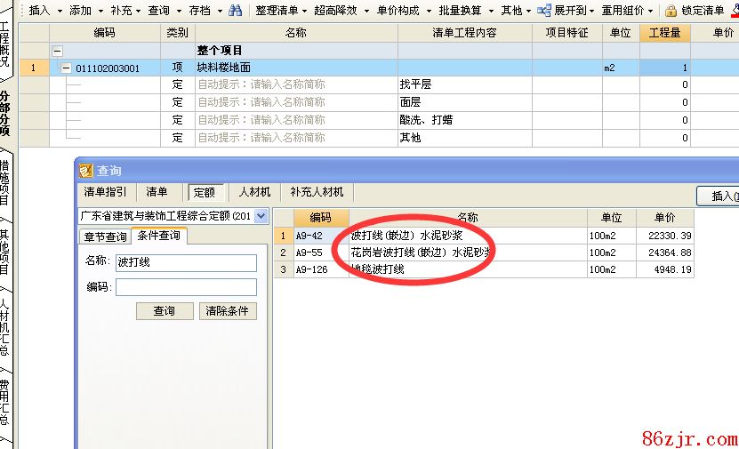 确实是不清楚你是怎样的材质,对应的选择相应块料的清楚,并套对应的波打线子目就是了。