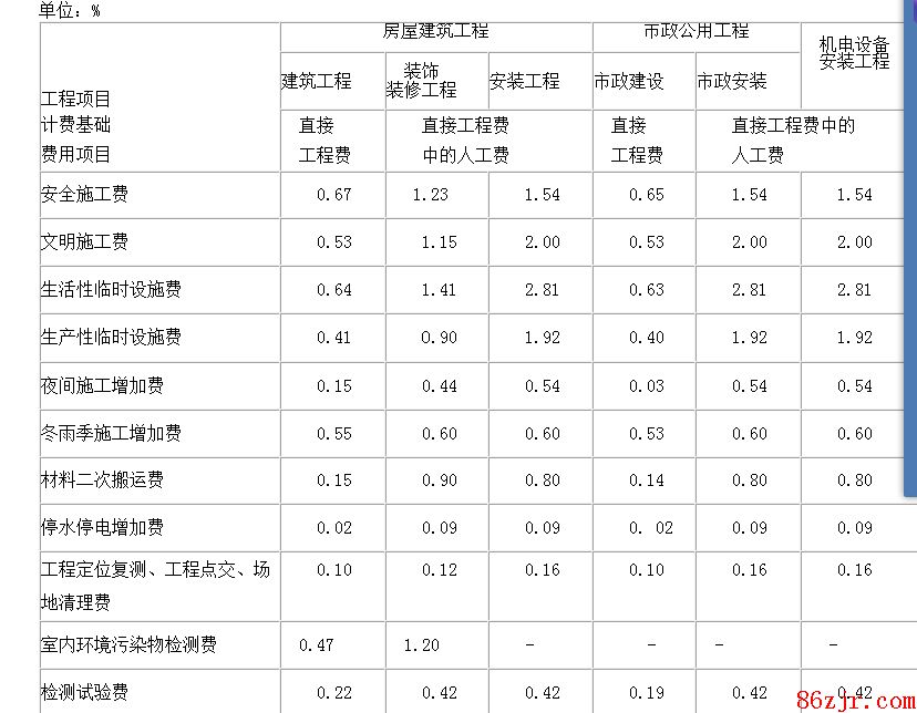 各种费率及取费基数可以在费用定额中查到,建议查看费用定额及相关文件。