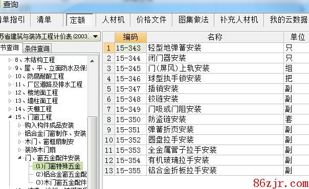 购入构件制品安置门窗单价中,除地弹簧、门夹、管子、拉手等特殊五金外,玻璃及一般五金已包括在相应的制品单价中,一般五金的安置人工已包括在定额内,特殊五金和安置人工应按"门、窗配件安置"的相应子目执行