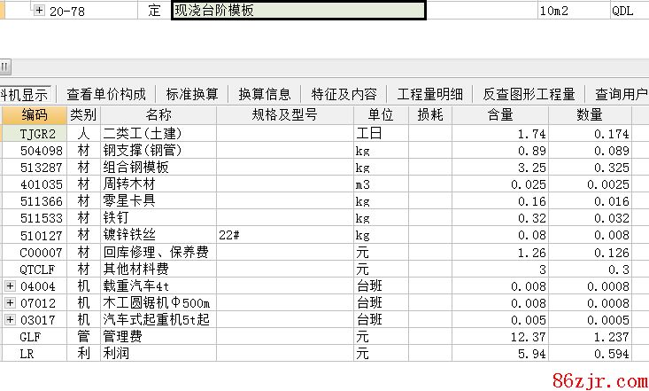 现浇混凝土及钢筋混凝土模板工程量除另有规定者外,均按混凝土与模板的接触面积以平方米计算。若使用含模量计算模板接触面积者,其工程量=构件体积*相应项目含模量(含模量详见附录)。
