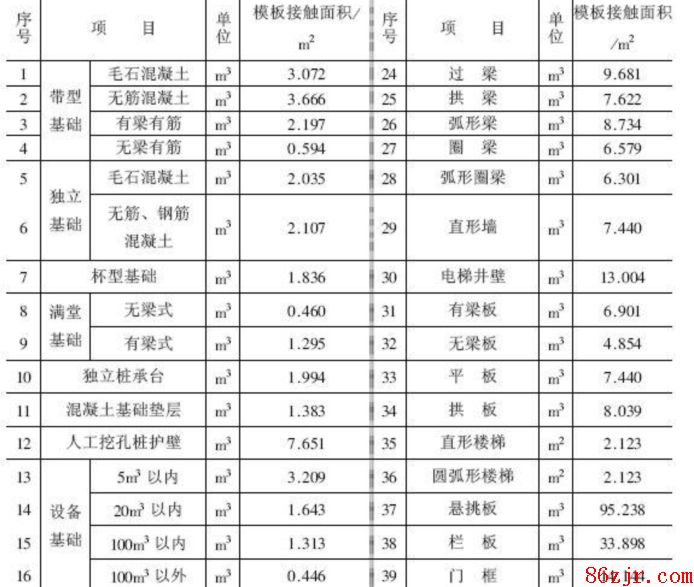 是立方,模板是平方,我想知道各构件的模板系数?算法我会!但没有现成的