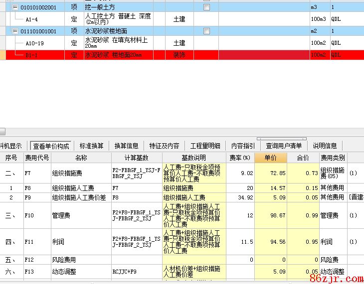注意在记取全用度综合单价时借用的定额要按对应的费率修改为全用度总额单价,也就是说在一个单位工程中,借用定额不会自动变为全用度综合单价的单价组成,注意一一修改