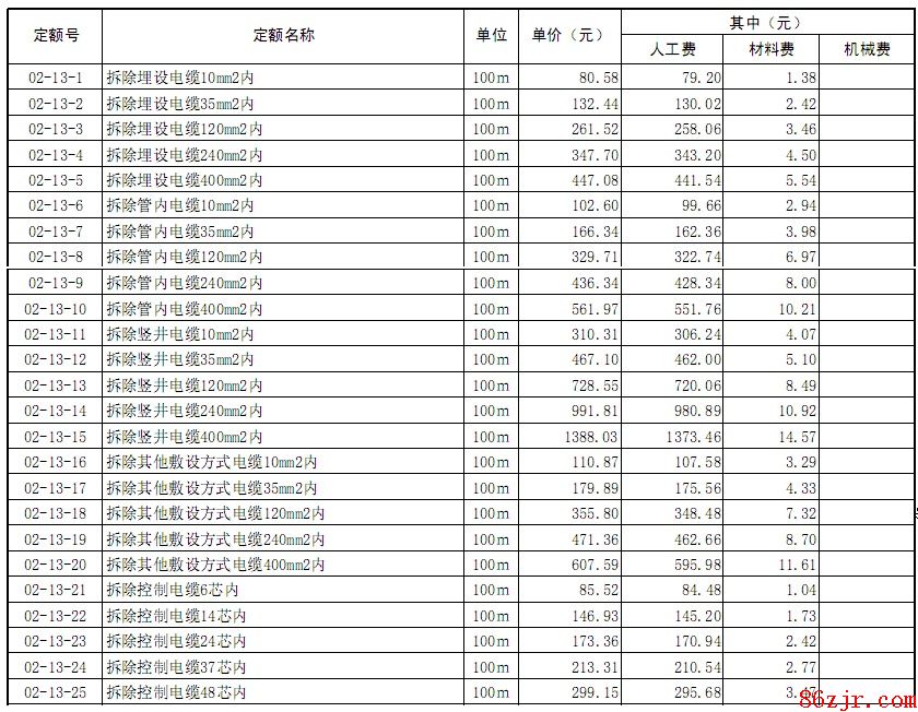 13清单中拆除电缆套什么清单项?