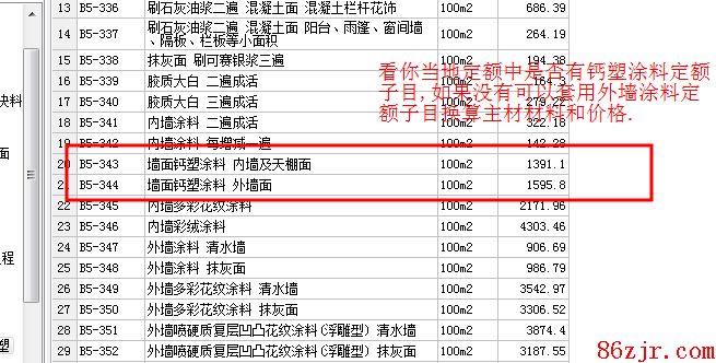 钙塑外墙涂料可以套外墙涂料定额子目,再换算材料。