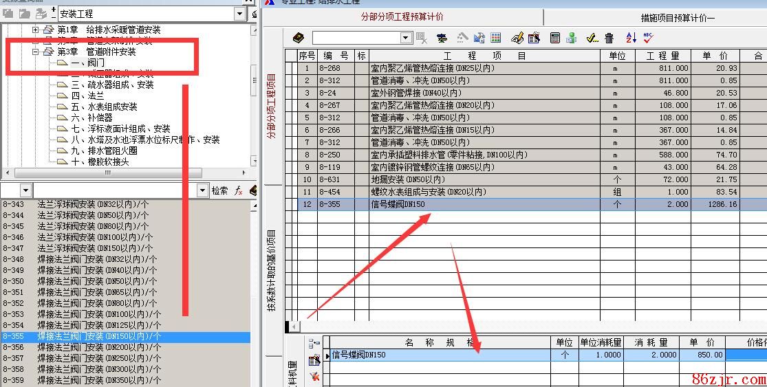 3.修改主材名字为信号蝶阀,并凭据市场价填入价格