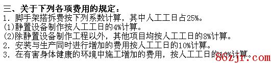是怎么得出来的价格? 答:脚手架和调试费一般都是按分局部项中各专业人工费的系数计算的,在每册的定额说明里面有。
