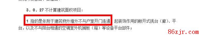 1 指的是依附于建筑物外墙外不与户室开门连通,起装饰作用的开放式挑台(廊)、平台,以及不与阳台相通的空调室外机搁板(箱)等设备平台部件;