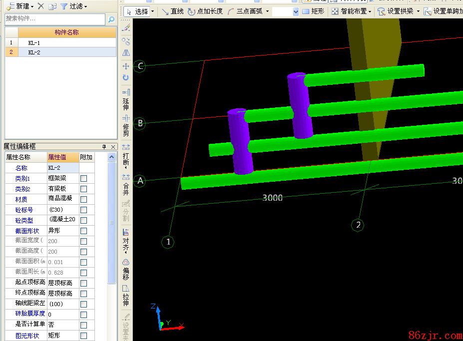 横档是圆形的时,就要用异形梁的圆形界说。