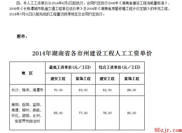 湖南最新的人工费按几号文,是多少