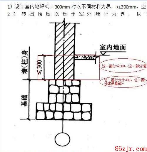2、这个基础和墙身需要离开。具体从哪里离开参考下图。
