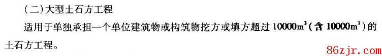 》第三章第二条第(二)项规定的是“单独包袱一个单位建筑物或修筑物挖方或填方超出10000方(含10000方)的土石方工程”。总承包不属于单独包袱土石方工程范畴。