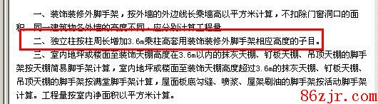 独立柱装修应该计算脚手架用度的,看一下相关定额依据: 建筑问答网永远以提供国内外最新、最好、最快的造价专业资讯为目标