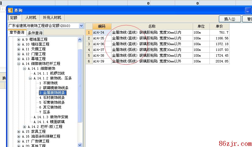 用金属装饰线子目计价。