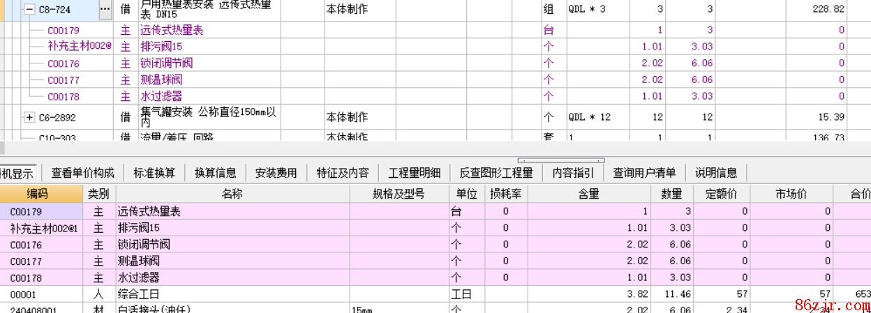 再插入主材时,主材的含量和数量都为零,这个时候要怎么计算,请举一个例子