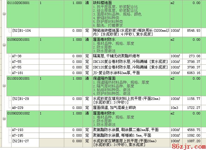 11ZJ201第七页第一种屋面的做法要套哪些清单和定额