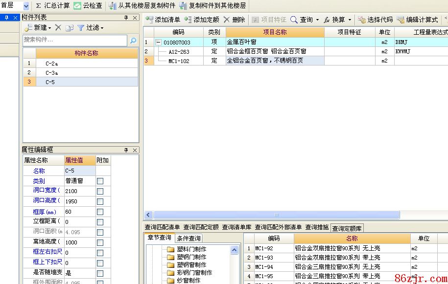 2、用“金属百叶窗”清单项,然后对应的套上“铝合金框百页窗 铝合金百页窗”安置子目,制作用度“全铝合金百页窗”,也标注上相应的名,图片2。