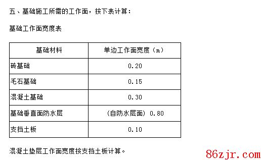 1、 混凝土垫层的劳动面宽度按支挡土板的劳动面宽度计算,系指垫层厚度小于200mm的情况;垫层厚度大于200mm时,其劳动面宽度按混凝土基础计算。