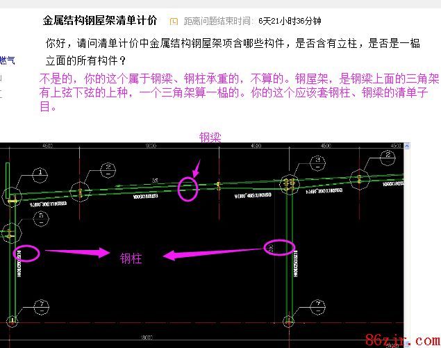 计价中金属结构钢屋架项含哪些构件,是否含有立柱,是否是一榀立面的所有构件?