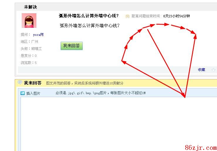 答:先求出弧墙的圆心角,然后计算圆的周长,除以360,乘以圆心角。