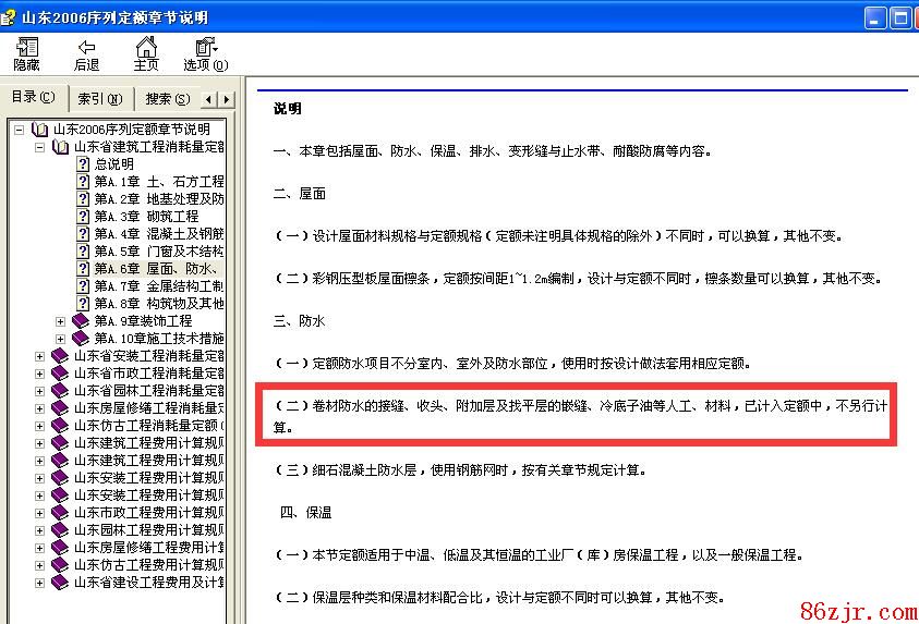 (二)卷材防水的接缝、收头、附加层及找平层的嵌缝、冷基础油等人工、质料,已计入定额中,不另行计算。