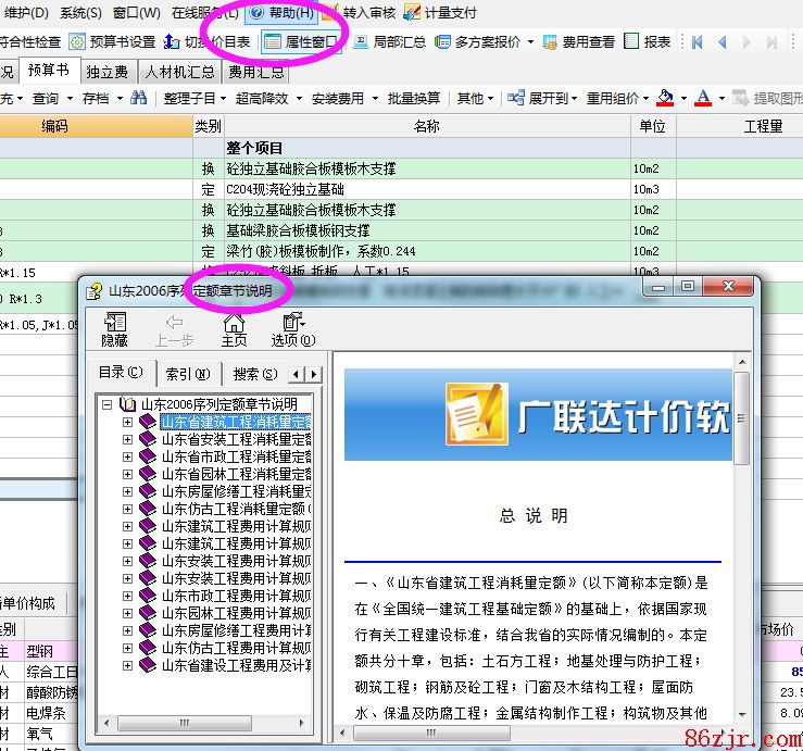 软件内置的援助文档就有定额的计算规则以及取费步骤的