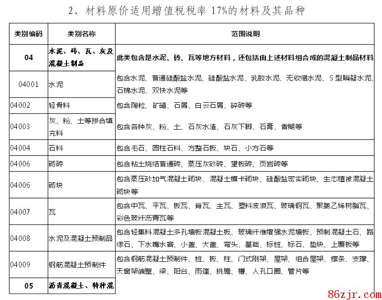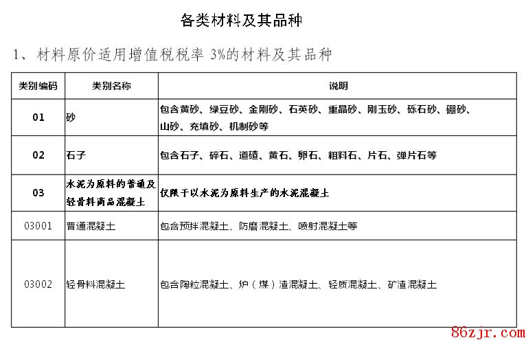 在营改增模式下接纳一般计税要领的质料认价按不含税价认价,种种质料的差别税率如下图。