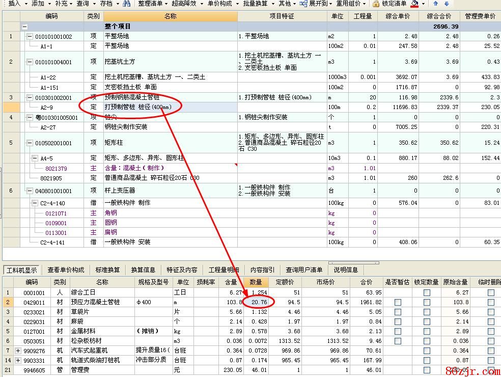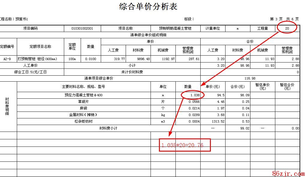 请问综合单价分析表下面的主要材料数量是怎么来的啊?跟对应定额下面的数不一样!