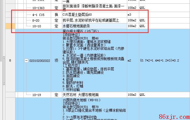 套个4-1子目或者B4-1子目,再套一个8-20找平层子目,最后套一个10-10水磨石嵌条子目就完善了。