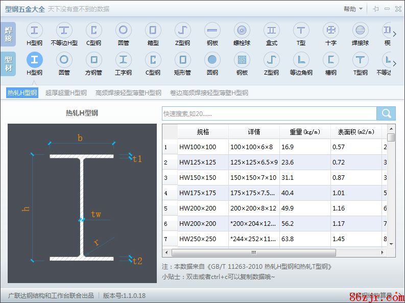 而查手册得到的是71.8,略大于手工计算,这个是因为手册还考虑了翼板和腹板之间的连接处实际是圆弧型的(类似于工字钢)。手工计算没有考虑这部分圆弧的重量。应该按手册为准。