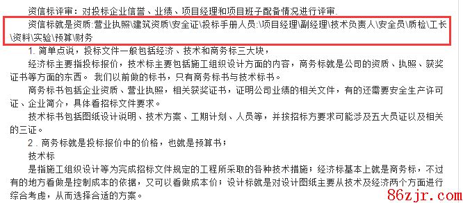 对投标企业信誉、业绩、项目经理和项目组成配备情况进行评审.资信标就是资质:营业执照\建筑资质\安全证\投标手册人员:\项目经理\副经理\技术负责人\安全员\质检\工长\资料\实验\预算\财务按照招标文件的要求提供需要的材料即可