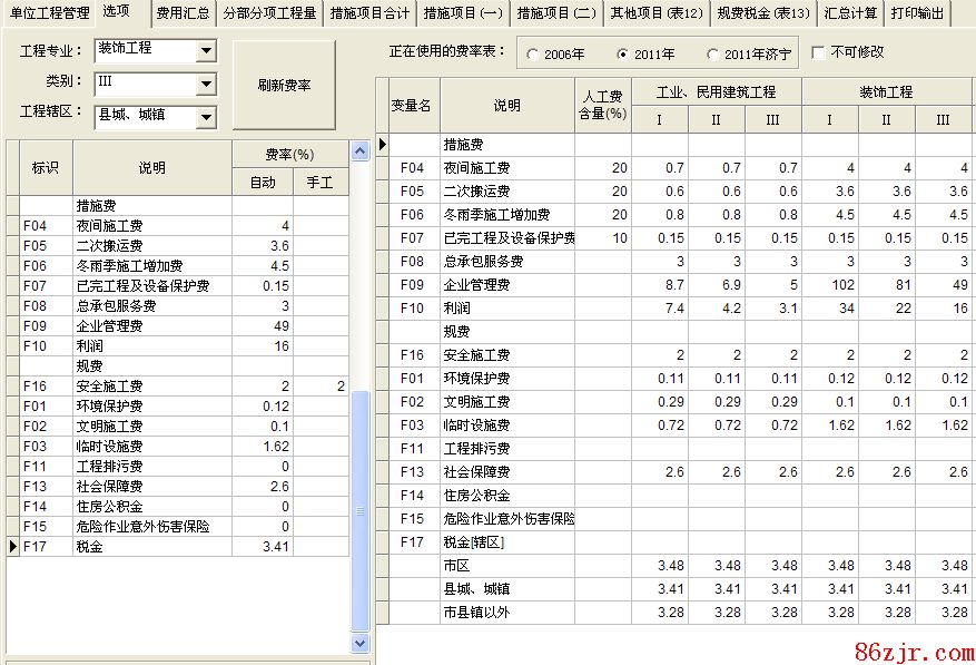省的装饰税金、利润、管理费费率分别取几多