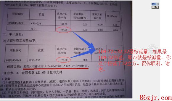 请问图中是核减72立方米 还是核减104-72立方米呢