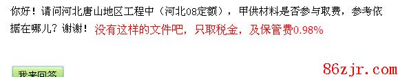 你好!请问河北唐山地区工程中(河北08定额),甲供材料是否参与取费,参考依据在哪儿?谢谢!
