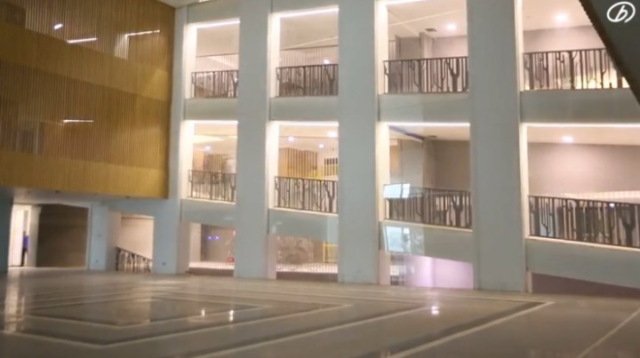 视频称,大楼接纳了先进的节能技术,比同体积建筑节能80%,每年减排二氧化碳12,000吨。“楼内空气比室外洁净100倍。”