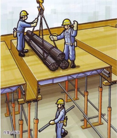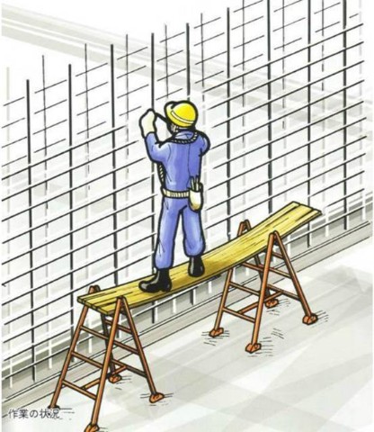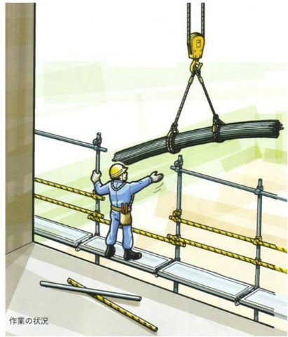 2 . 临时安排在作业平台上的钢材可能掉落。