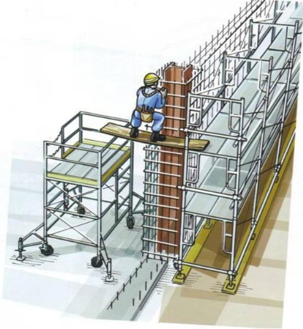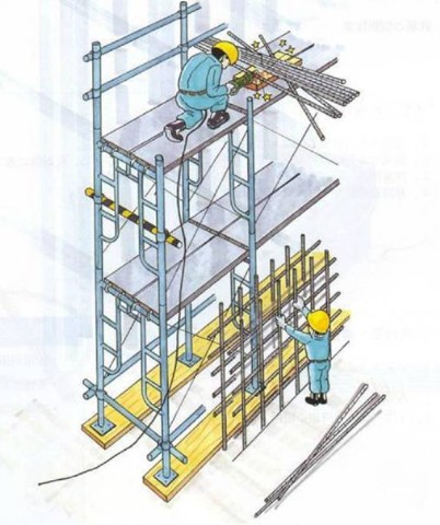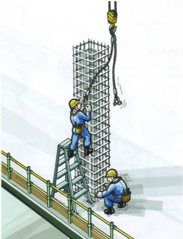 2.设置绑扎立柱钢筋用的作业平台,或用人字梯架设三个支撑点的简易作业平台。