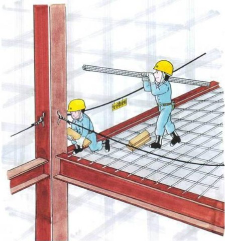 1.在作业平台周围都要设置护栏。(实在难以设置护栏时,设置安定母绳,要求作业人员将安定带系挂其上。或在其下方张挂安定网。)