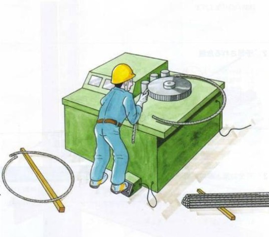 用圆形弯折机加工箍筋用的钢材。