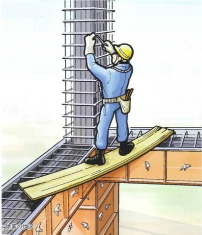 2 . 跳板弯曲导致作业人员失去平衡,从高处坠落。