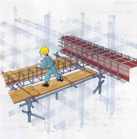 2. 搬运钢筋的作业人员被模板质料或钢材绊倒。