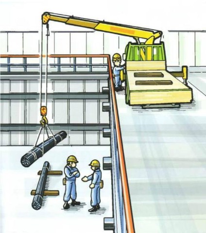 3 . 用起重设备吊运质料时,应将质料下到准备好的枕木上方。