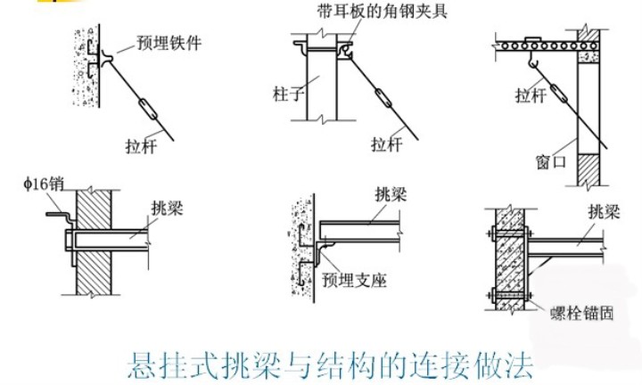 悬挑钢梁要安置牢固(最好焊接)产油上警示颜色,防备碰撞。