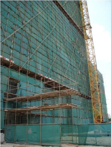 2)多层悬挑是利用悬挑梁或悬挑架作脚手架基础分段悬挑分段搭设脚手架,利用此种要领可以搭设超出50m以上的脚手架。每段搭设高度不该超出18米,一般5、6层一挑,防备荷载过大。不过实际工程中可以适当的凭据现场情况多挑个1、2层也是没有关系的。