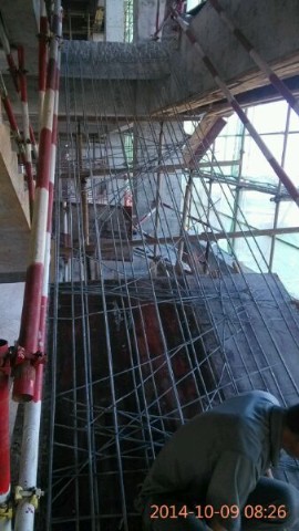 重新支模、扎筋、浇砼