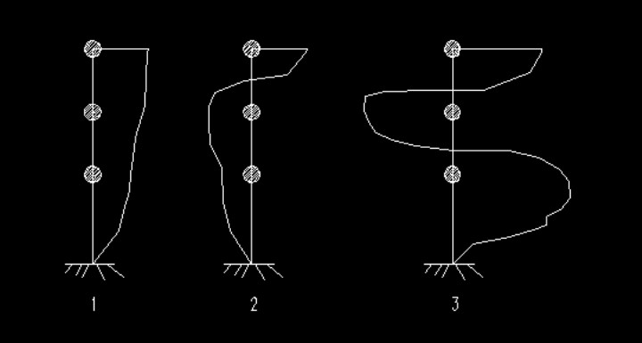 2.接纳阵型反响谱法时,以三自由度体系为例,结构力学上学的前三个震动简图如下,而我们在用PKPM计算的时候,第一第二周期分别为x,y偏向的平动,第三周期为扭转,与结构力学学的无法对应,希望列位老师指点迷津。
