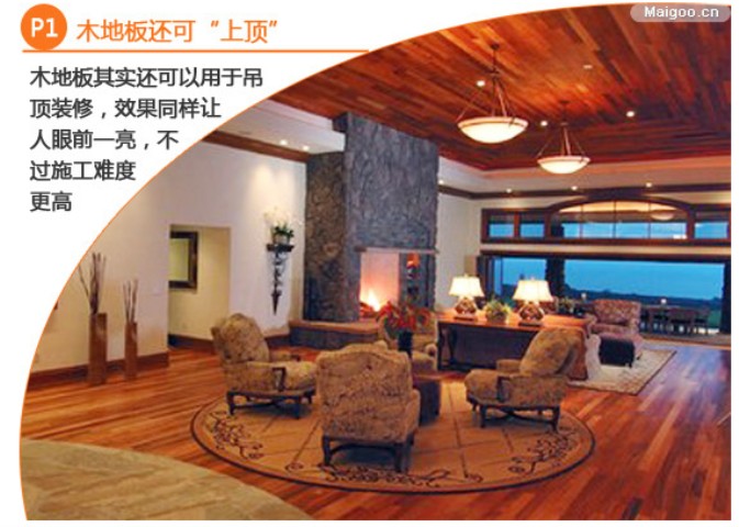 用地板装修到墙面上已经让人觉得很不可思议了,但是木地板其实还可以用于吊顶装修,如果应用恰当,效果同样让人眼前一亮。