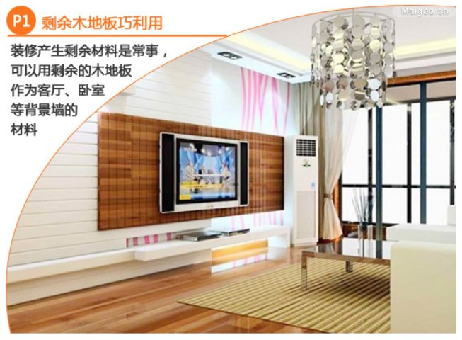 装修孕育产生剩余质料是常事,无论是装修前制定了何等详细的计划,不少家庭装修后,总会剩下一些装修余料。许多地面铺木地板的家庭,在装修完成后,可能会剩下不少。对付这些木地板,是不是感触到“食之无味,弃之可惜”呢?现在就不消为此忧愁了,完全可以用这些剩余的木地板作为电视、沙发、餐厅、卧室等配景墙的质料。