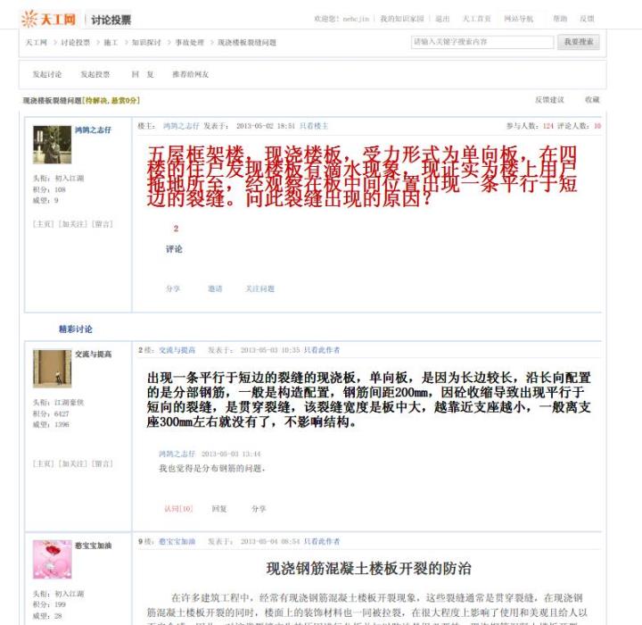 (2)对受力产生的裂缝,可根据裂缝出现的原因,有针对性地采取加固补强措施。 如果对已影响到结构安全的楼板裂缝,除了沿缝凿成V字形凹槽冲洗干净,将环氧树脂液用压力灌入缝内封闭外,还要用粘扁钢或碳纤维布等措施对楼板进行加固。当用碳纤维布加固时,对单条裂缝,除了沿缝粘贴外还要在垂直于缝方向间距布宽粘贴;对相互交叉的多条缝要井字形粘贴,间距同布宽。(布宽300mm左右为宜) (3)对由温度、混凝土的收缩、施工等因素引起的非受力裂缝处理如下: 1、对于一般混凝土楼板表面的龟裂,可先将裂缝清洗干净,待干燥后用环氧树脂液灌缝或用表面涂刷封闭。施工中若在终凝前发现龟裂时,可用抹压一遍处理。 2、对其它一般裂缝(宽度在0.05mm~0.2mm之间)的处理,其施工顺序为:清洗板缝后用1:2或1:1水泥砂浆抹缝,压平养护,封闭以恢复观感即可。(仅限于缝的数量少且非通长、贯通的缝) 3、对当裂缝(宽度大于0.2mm)较大时,应沿裂缝凿八字形凹槽,冲洗干净后,用1:2水泥砂浆抹平,也可以采用环氧胶泥嵌补。(仅限于缝的数量少且非通长、贯通的缝) 4、对当楼板出现裂缝面积较大时,应对楼板进行静载试验,检验其结构安全性,必要时可在楼板上增做一层钢筋网片,以提高板的整体性。或在板面用环氧树脂液灌缝封闭(作一层防水也行),在板底用碳纤维布粘贴成井字形,间距同布宽。 5、对通长、贯通的危险结构裂缝,裂缝宽度大于0.2mm的处理方法也为:除了沿缝凿成V字形凹槽冲洗干净,将环氧树脂液用压力灌入缝内封闭外,还要用粘扁钢或碳纤维布等措施对楼板进行加固。当用碳纤维布加固时,对单条裂缝,除了沿缝粘贴外还要在垂直于缝方向间距布宽粘贴;对相互交叉的多条缝要井字形粘贴,间距同布宽。(布宽300mm左右为宜) 6、对通长、贯通与非通长、贯通裂缝共同组成数量又多时板底只有纵横都粘贴。 |